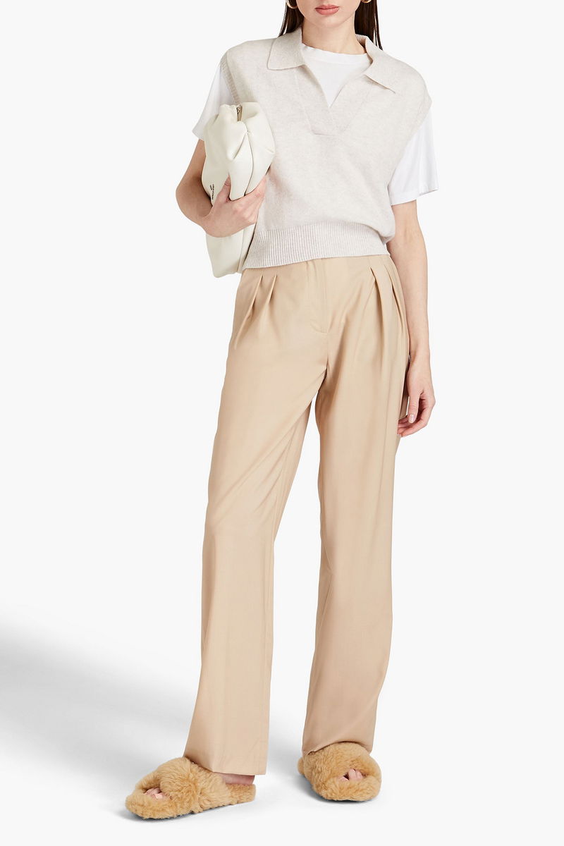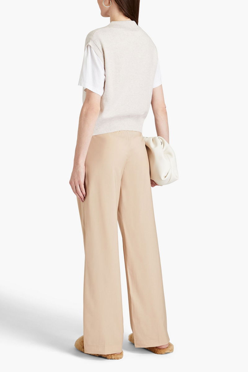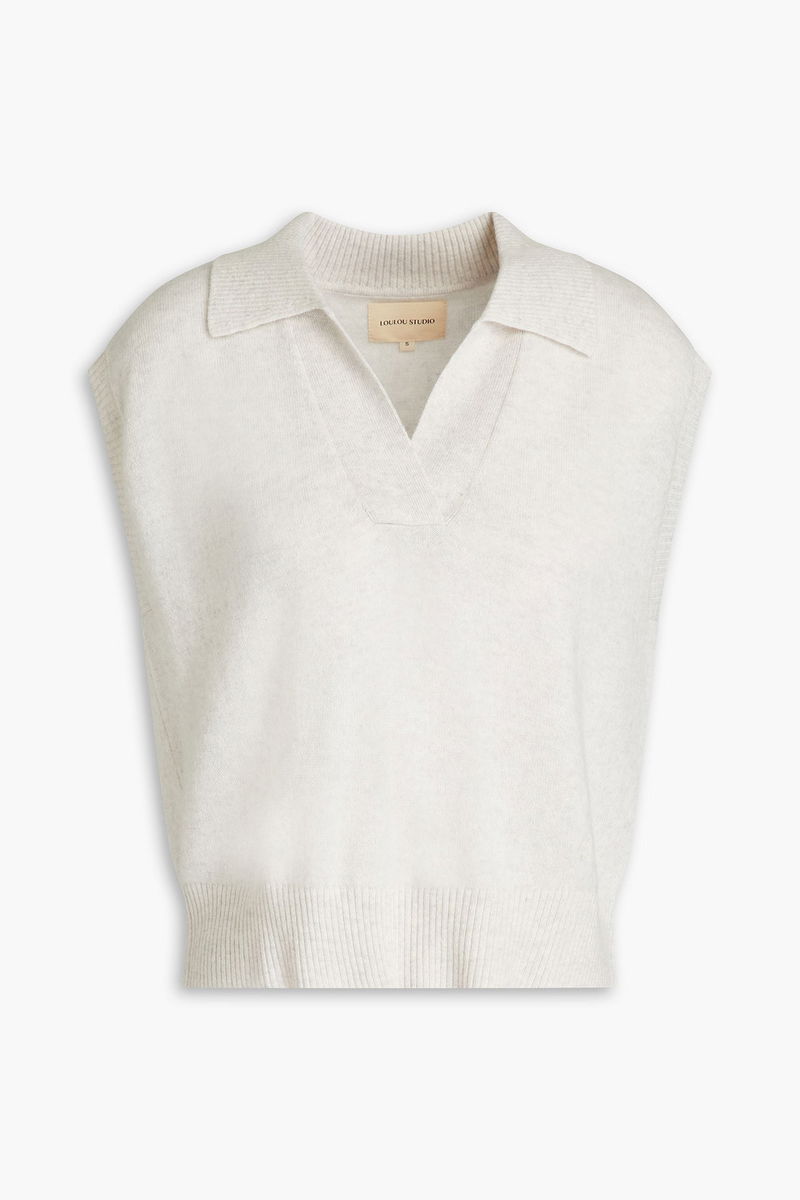 Vest. Mélange. Cashmere. Embroidered logo. Ribbed trims. Slips on. Mid-weight knit.