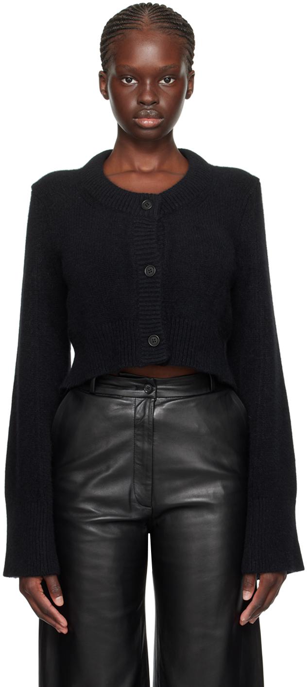Knit Oeko-Tex®-certified mercerized wool- and yak-blend cardigan. · Rib knit crewneck, hem, and cuffs· Button closure· Vented side seams· Bell sleeves.