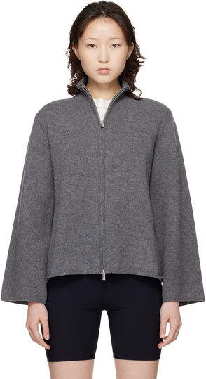 Cardigan mélange wool and cashmere-blend. Embroidered ribbed trims, button Fastenings through front, mid-weight Knit.