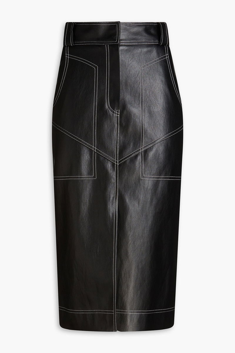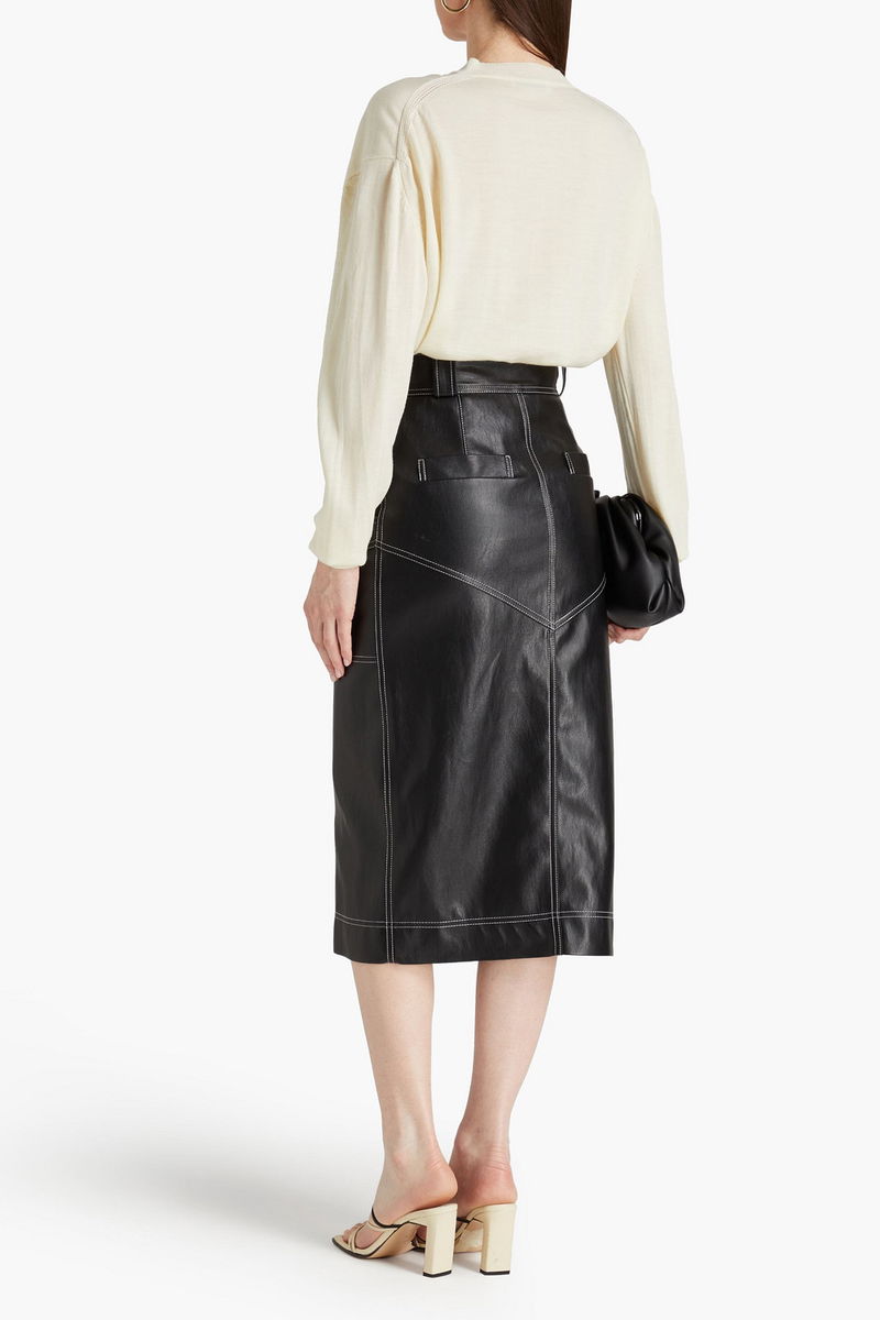 Faux leather topstitching pencil skirt.