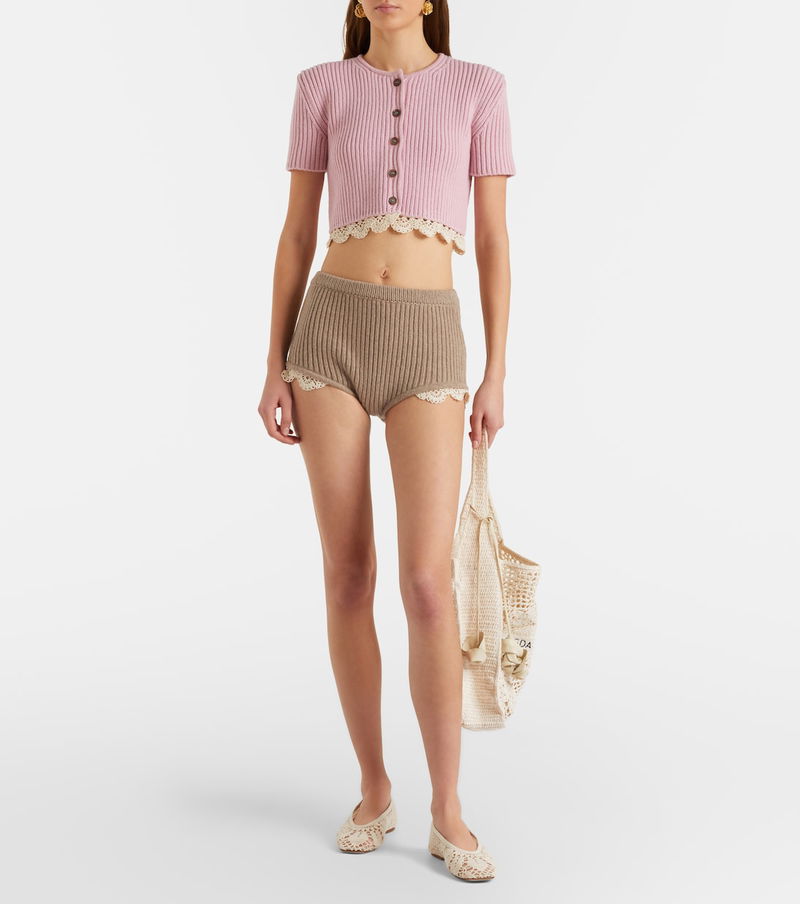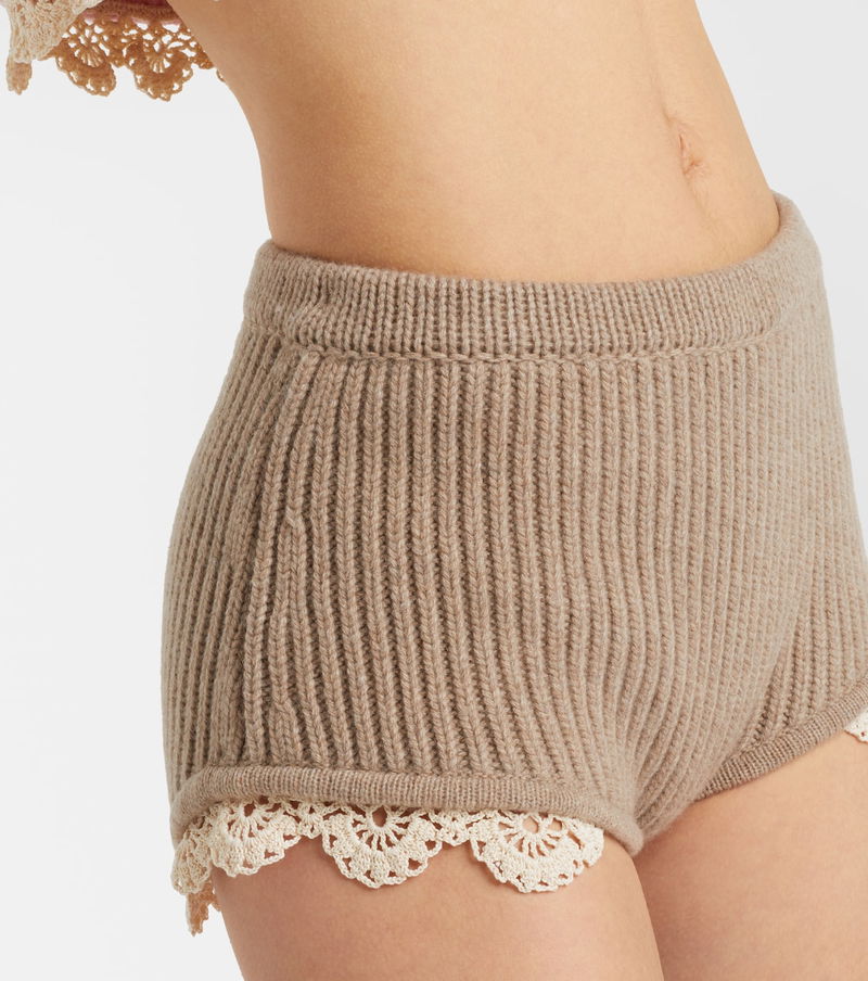 Your knitwear edit is not complete without some bottoms like these shorts by Magda Butrym. In pure cashmere, the beige style features a high-rise silhouette, enriched with a delicate crochet lace trimming.