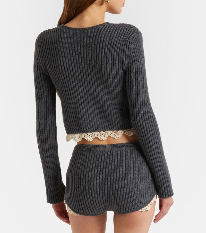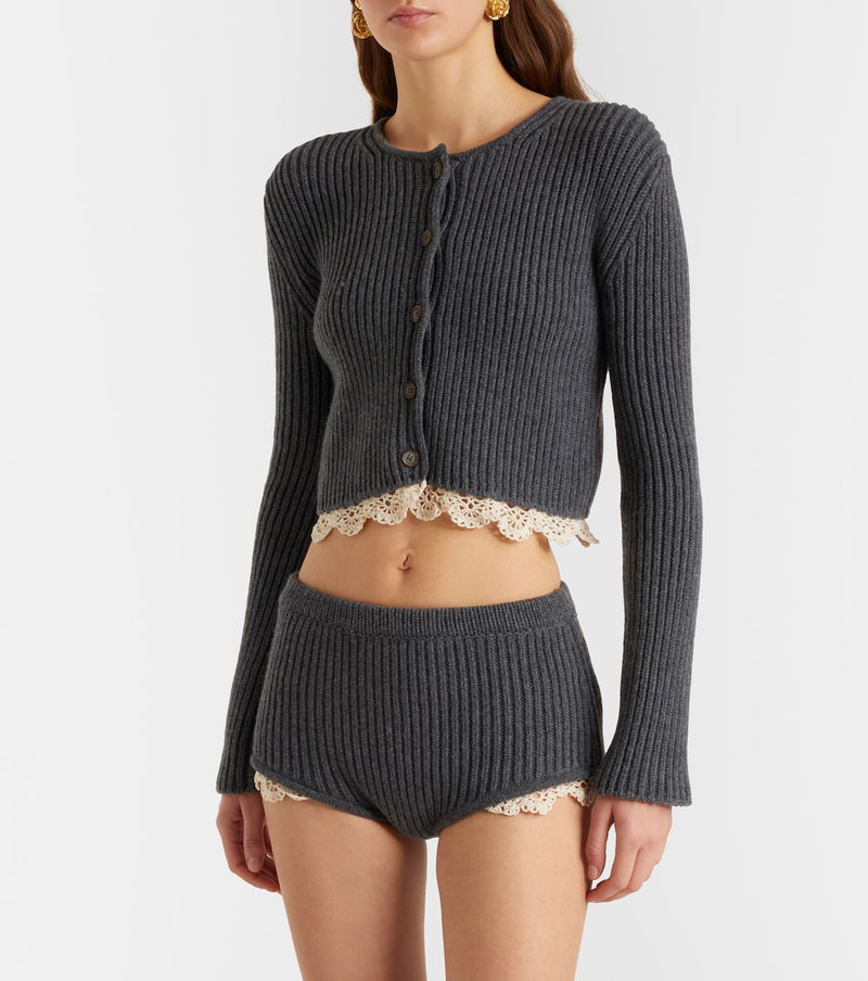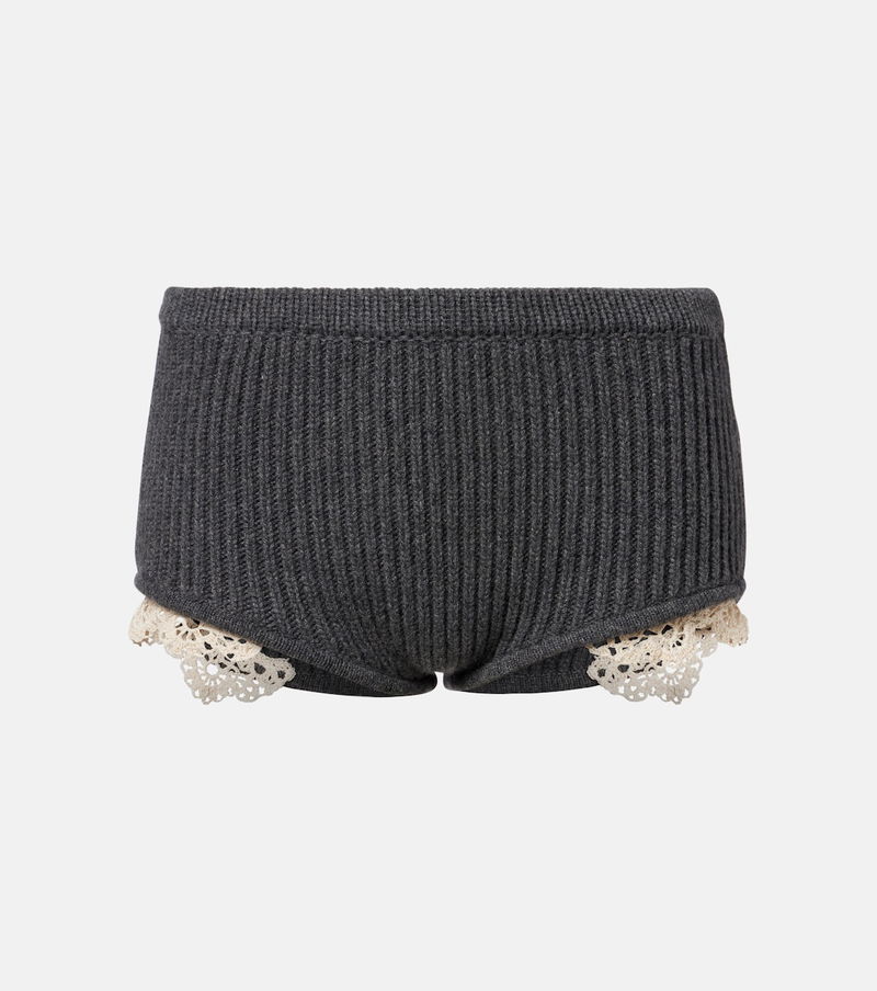 Your knitwear edit is not complete without some bottoms like these shorts by Magda Butrym. In pure cashmere, the grey style features a high-rise silhouette, enriched with a delicate crochet lace trimming.