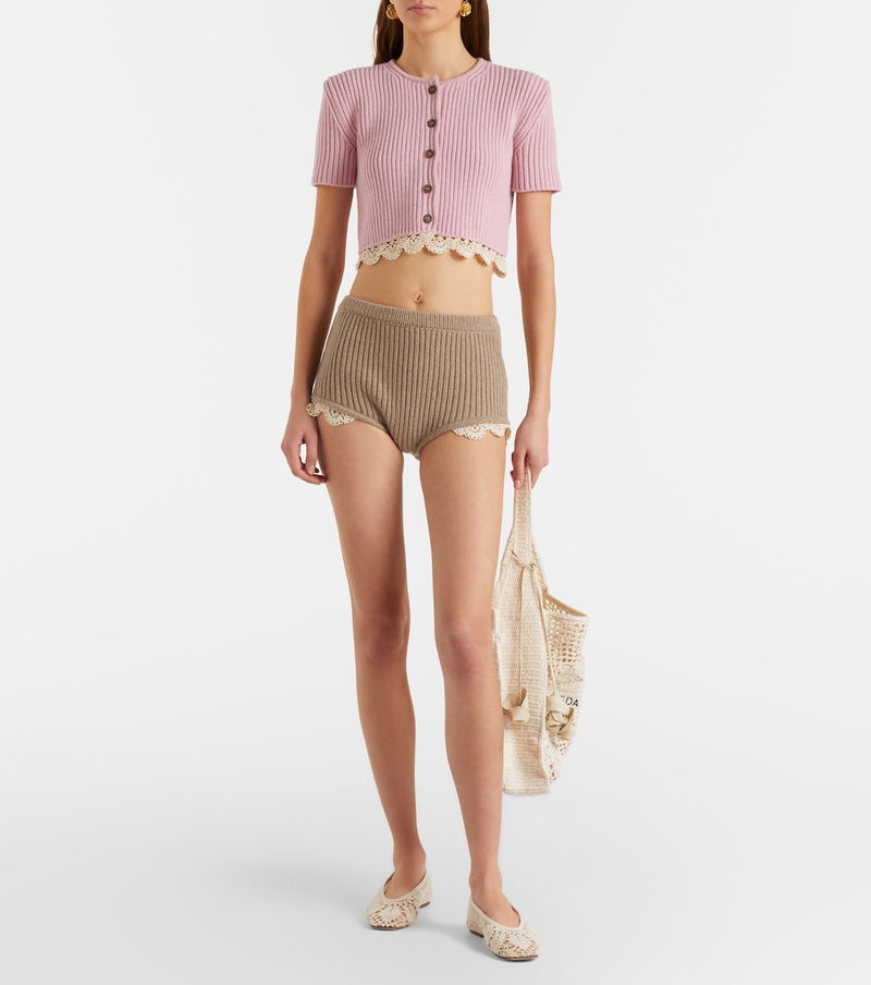 Your knitwear edit is not complete without refined pieces like this top by Magda Butrym. In pure cashmere, the pink style features a cardigan-inspired silhouette, accented with a delicate crochet lace trimming.
