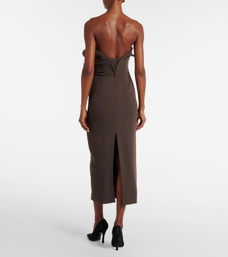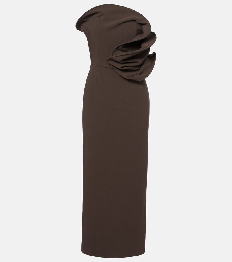 Magda Butrym aims to empower with sharp modern style, expertly delivered through artisanal excellence. Crafted from a soft wool blend, this cocktail dress boasts a strapless silhouette with elegant draping that creates a flower-like detail.