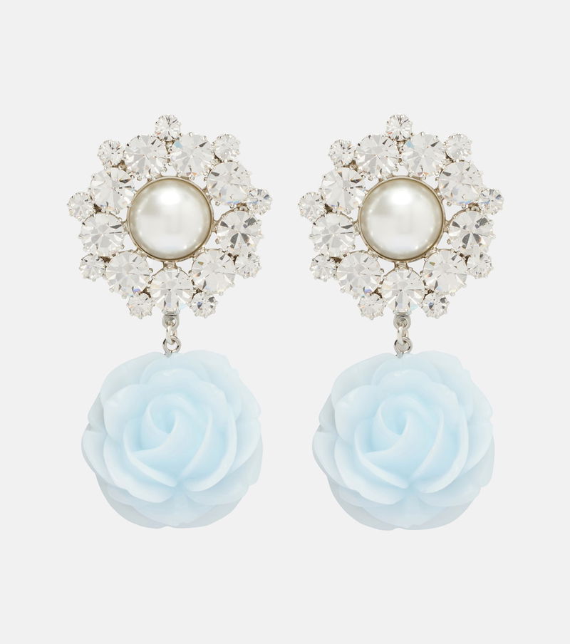 Floral appliqués have become something of a Magda Butrym signature, appearing artfully on the brand's most coveted designs. These drop earrings feature a blue rose floral appliqué, as well as crystals and faux pearls.