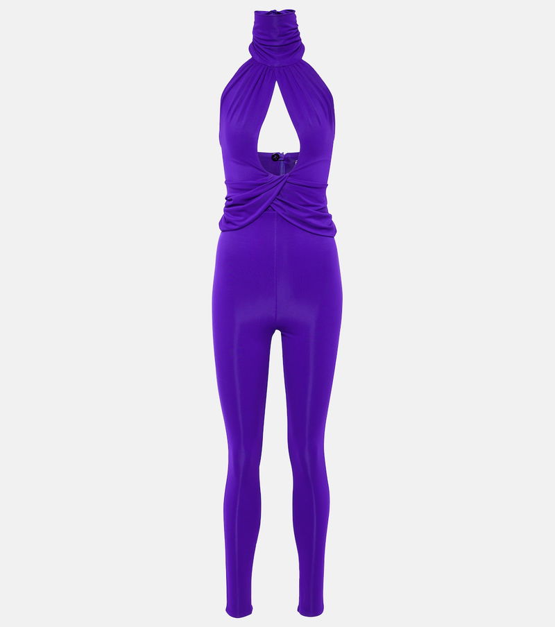 This violet jumpsuit Magda Butrym is made into a fully fitted backless silhouette featuring a front cutout. The halterneck design has gathered detailing on the bodice and is made from stretchy jersey.