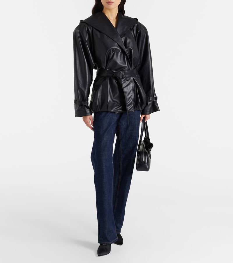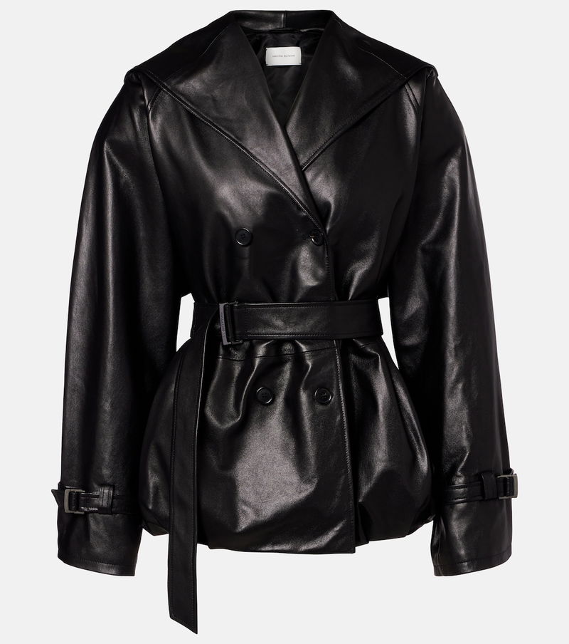 Magda Butrym aims to empower with sharp modern style, expertly delivered through artisanal excellence. This leather jacket features a detachable waist belt and a hood.
