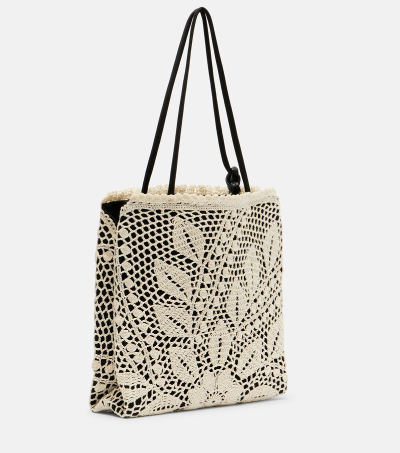 All of Magda Butrym's crochet styles are made by hand in Poland by a team of skilled artisans. The Julia Small tote bag showcases the signature construction and is finished with grained leather trims.