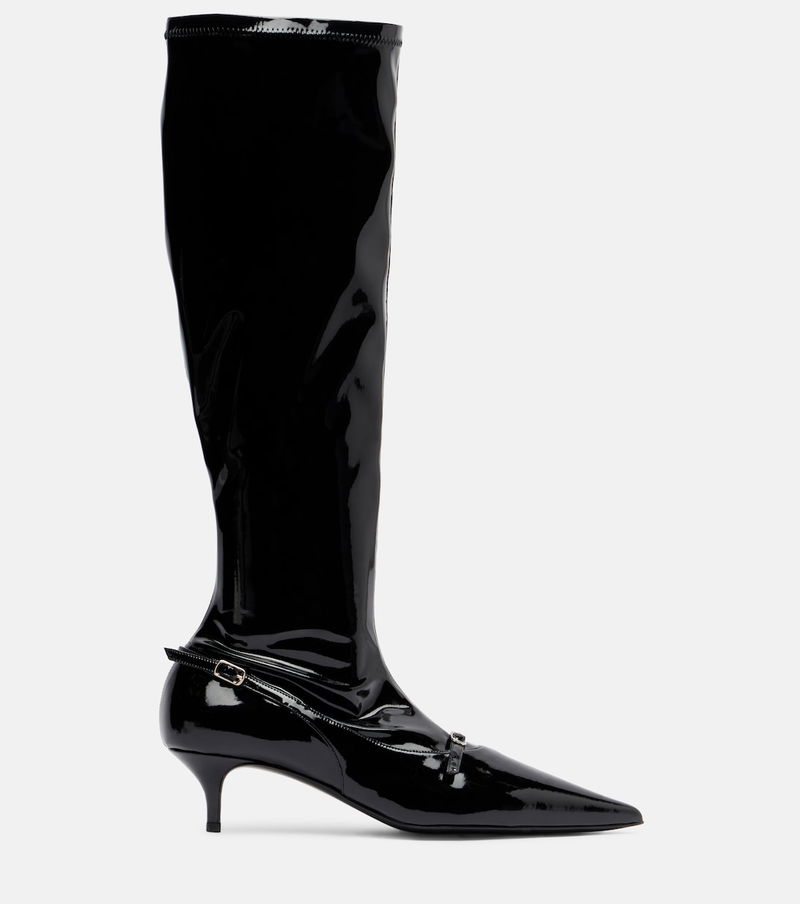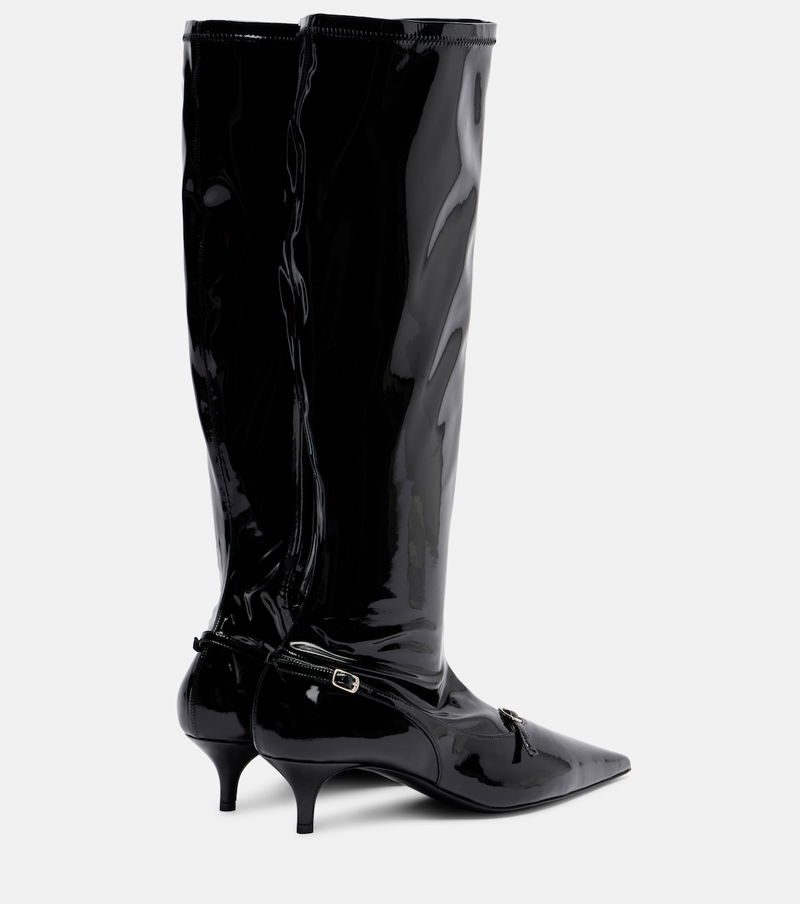 Magda Butrym aims to empower with sharp modern style, expertly delivered through artisanal excellence. Crafted from glossy patent leather, these knee-high boots feature pointed profiles, kitten heels, and minimalist buckle detailing.