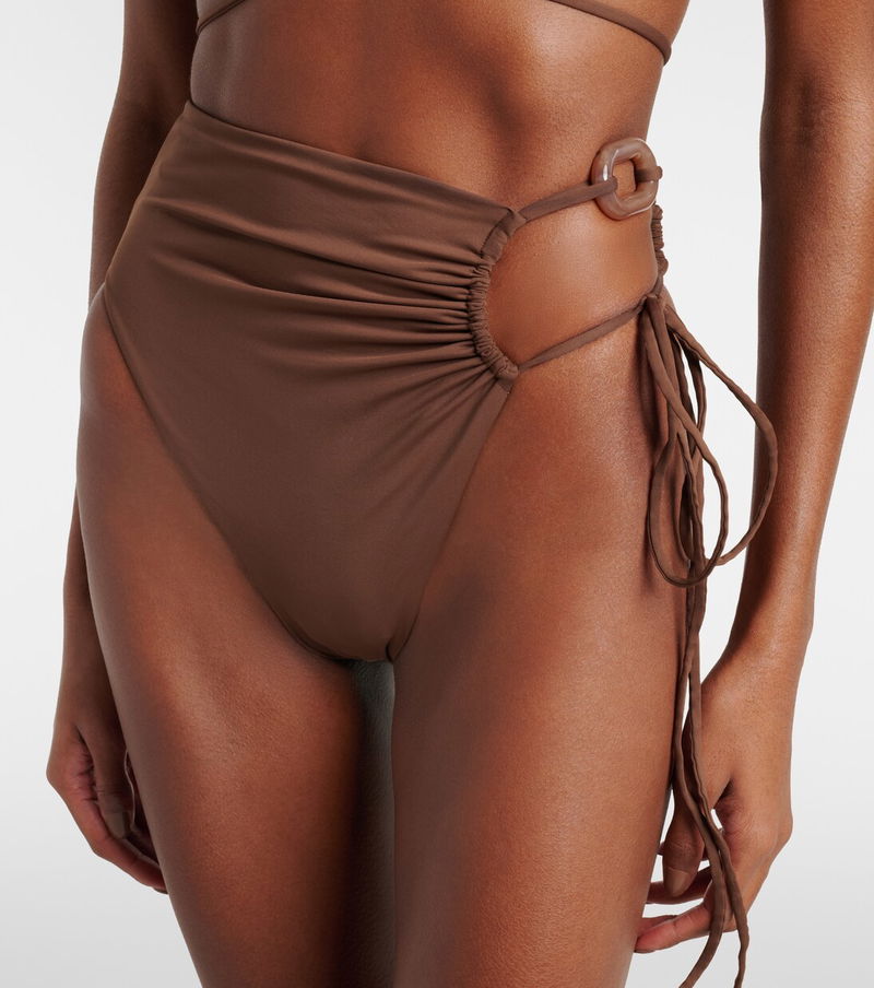 These Magda Butrym bikini bottoms have a high-rise cut. The piece is accented with a decorative ring and an adjustable self-tie detail that borders the ruched design.