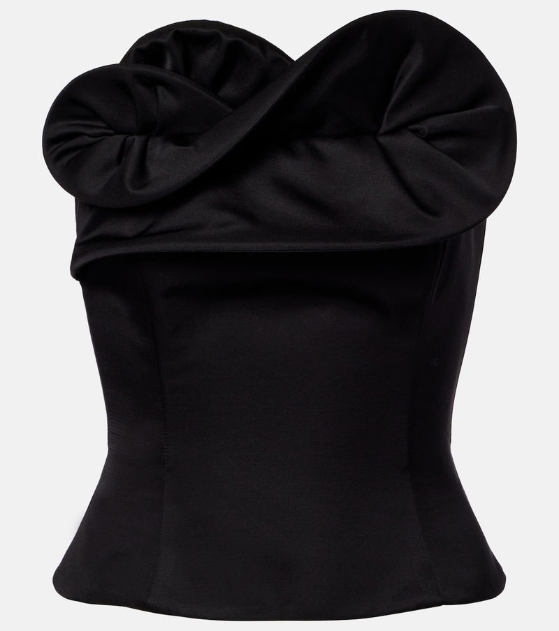 Magda Butrym aims to empower with sharp modern style, expertly delivered through artisanal excellence. This bustier top is made from wool and silk and has sculptural ruffles on the front.