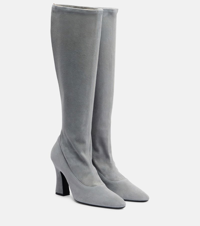 Magda Butrym aims to empower with sharp modern style, expertly delivered through artisanal excellence. Made in Italy from grey suede, these boots are a knee-high pair with pointed-toe silhouettes and a sock-like construction.