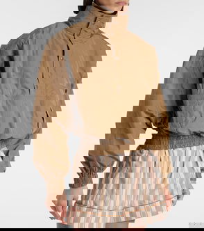 Maison Margiela’s expert craftmanship is apparent through this cream jacket which is tailored to a subtle peplum silhouette and offset with white lace.