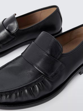 Maison Margiela leather loafers. Slips on. Closed round toe, split toe, penny detail, tonal stitching.