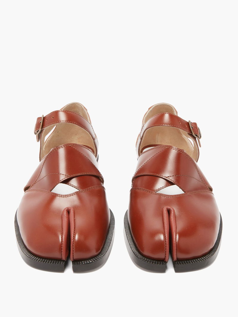 Maison Margiela's brown Tabi sandals are a sophisticated example of the label's avant-garde flair. They're exactingly crafted in Italy to a signature split-toe silhouette with an adjustable ankle strap, then hallmarked at the back with a single white stitch as a tribute to the label founder's pared-back approach.