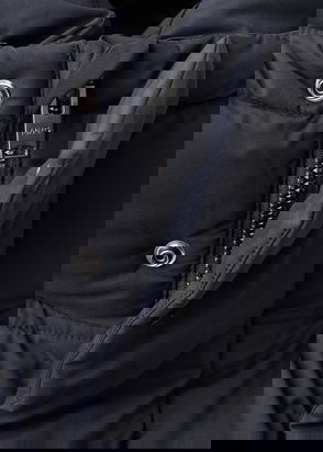 Side welt pockets short zipper closure long-sleeved padded texture logo on the side printed logo.