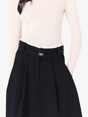 Paisley-print, Crepe, Partially elasticated waist, Front split, Asymmetric hem, Concealed zip fastening along side, Non-stretchy fabric.