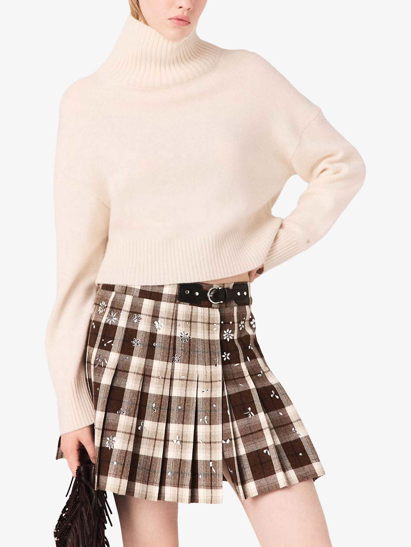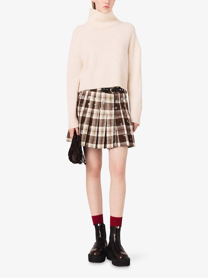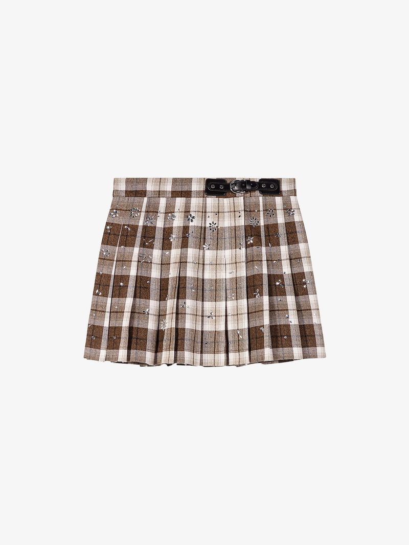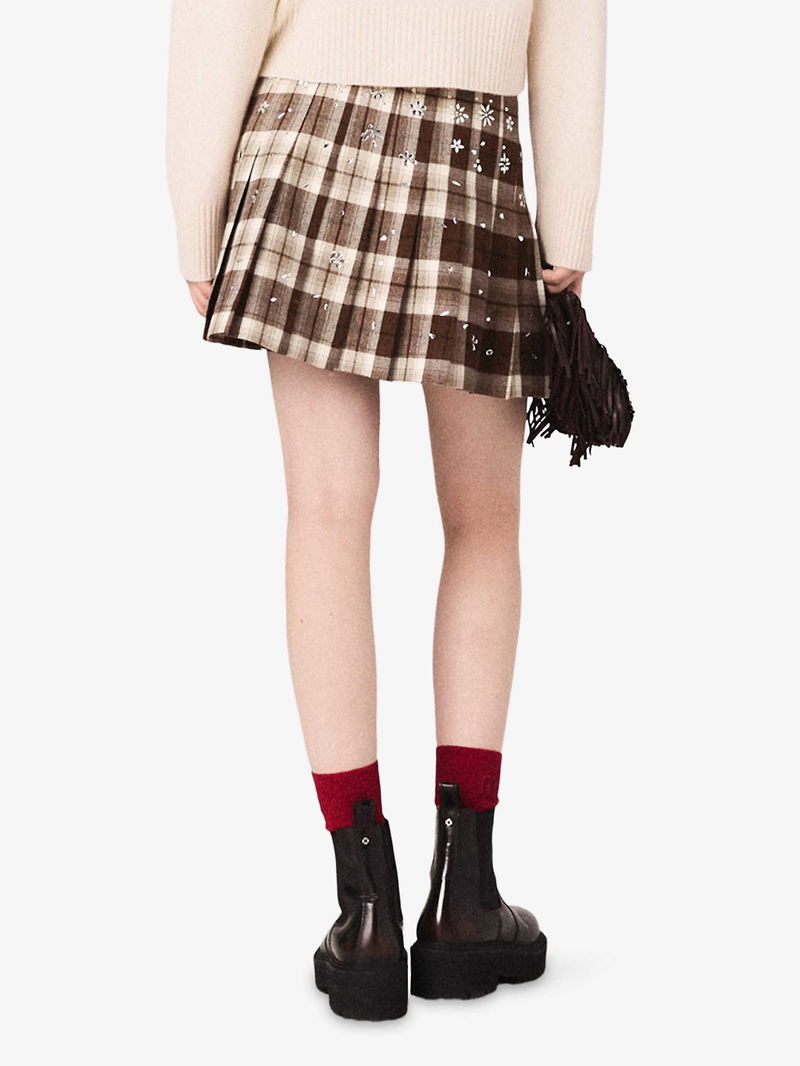 Checked Rhinestone-Embellished Cotton-Blend Mini Skirt