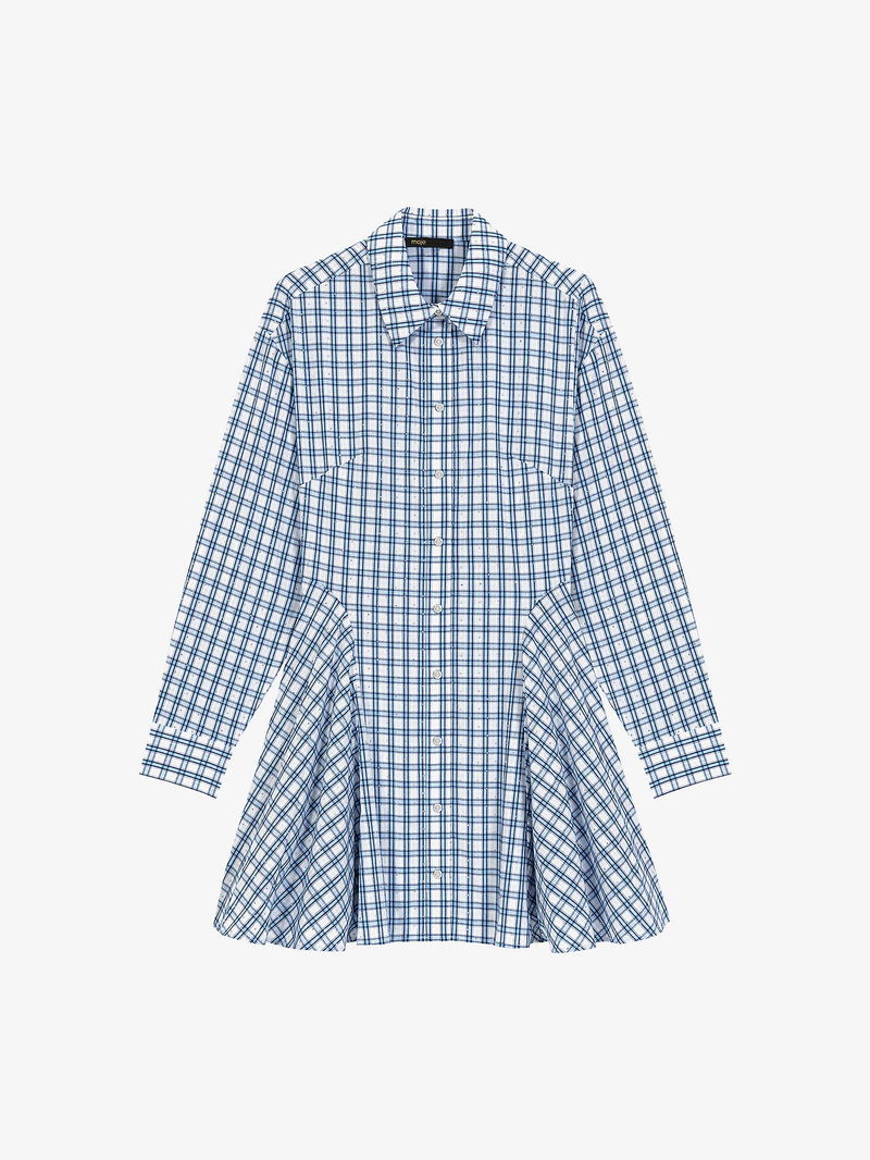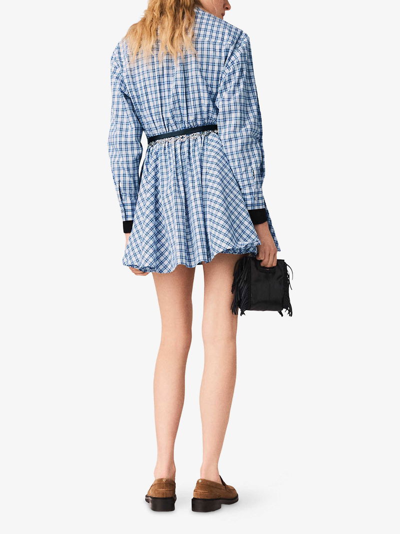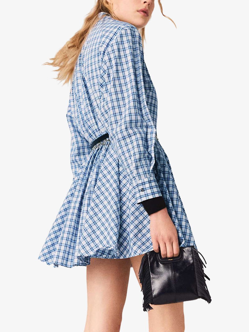 Checked Rhinestone-Embellished Cotton Mini Dress
