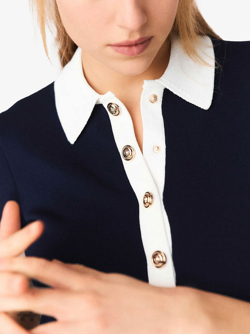 Contrast-Trim Polo-Collar Cotton-Blend Mini Dress