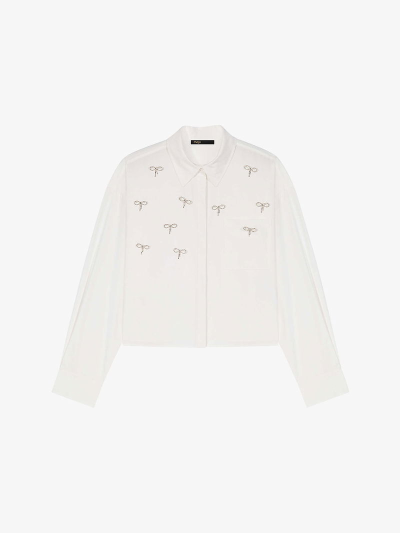 Cropped Jewel-Embellished Cotton Shirt