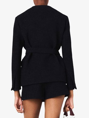 Jacket, Metallic, Bouclé-tweed, Button-embellished, Cropped, Fringed trims, Breast pockets, Button fastenings through front, Mid-weight, non-stretchy fabric.