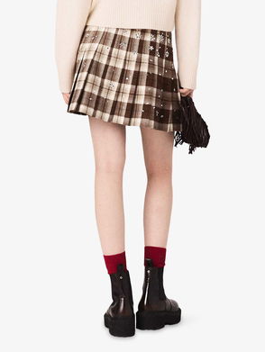 Skirt, Denim, Crystals, Belt loops, Multipockets, Button and concealed zip fastening at front, Mid-weight, non-stretchy fabric.