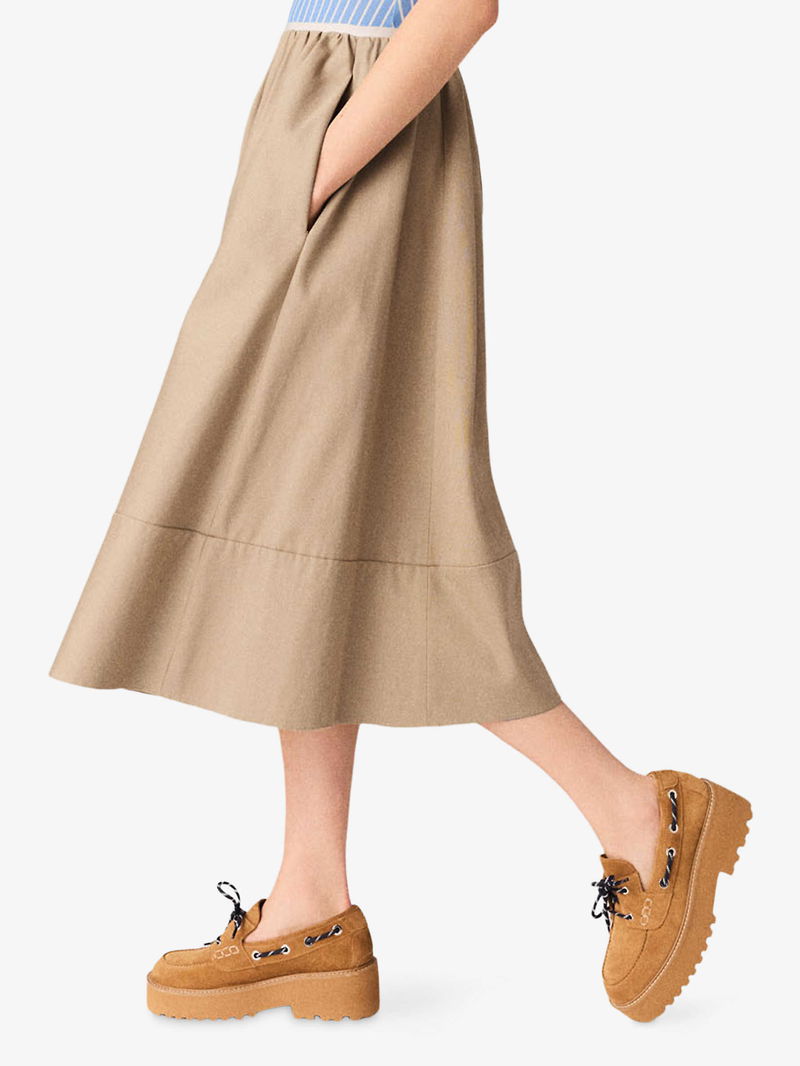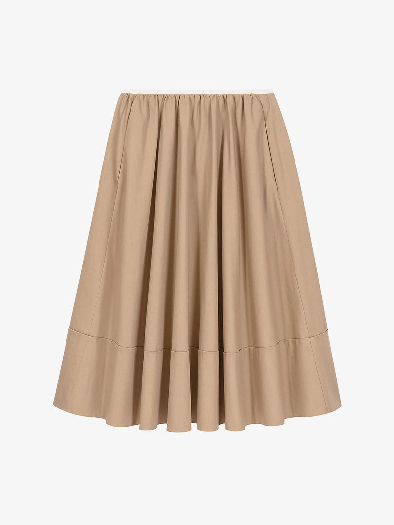 Elasticated-Waist Side-Pocket Cotton Midi Skirt