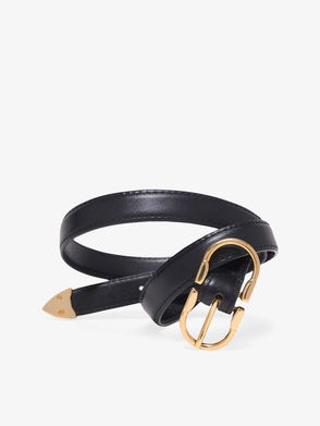 Belt, Leather, Silver hardware, Spiked, Crystals, Buckle fastening.