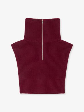 Maje gave a simple white cotton T-shirt with a round neckline a trendy upgrade with a large detachable statement collar in contrastig black faux leather. The tred of statement collars emerged last year but it does't seem to be gong anywhere anytime soon. The collar is frilled around the edges and is secured by front laces. The cotton used for the T-shirt is cotton, grown without use of pesticides and GMOs as the Parisian brand strives towards a sustainable future.