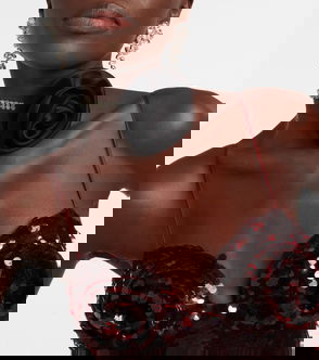 Maje brass and cotton choker necklace. Flower-shaped pendant, cord necklace, glass diamante embellishment, polished finish, Self-tie.