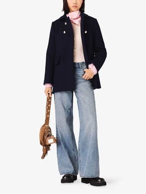 Maje wool-blend coat. Button fastening. Regular fit, collar, long sleeves, patch pockets at front, fringe trims, stud embellishment, brushed texture. Midweight, non-stretch.