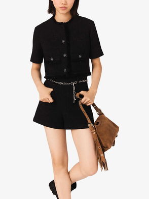 Maje woven shorts. Regular fit, all-over flower embroidery, wrap style, slightly flared cut.