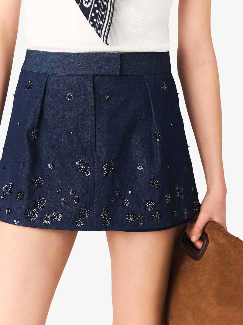 Layered Sequin-Embroidered Denim Shorts