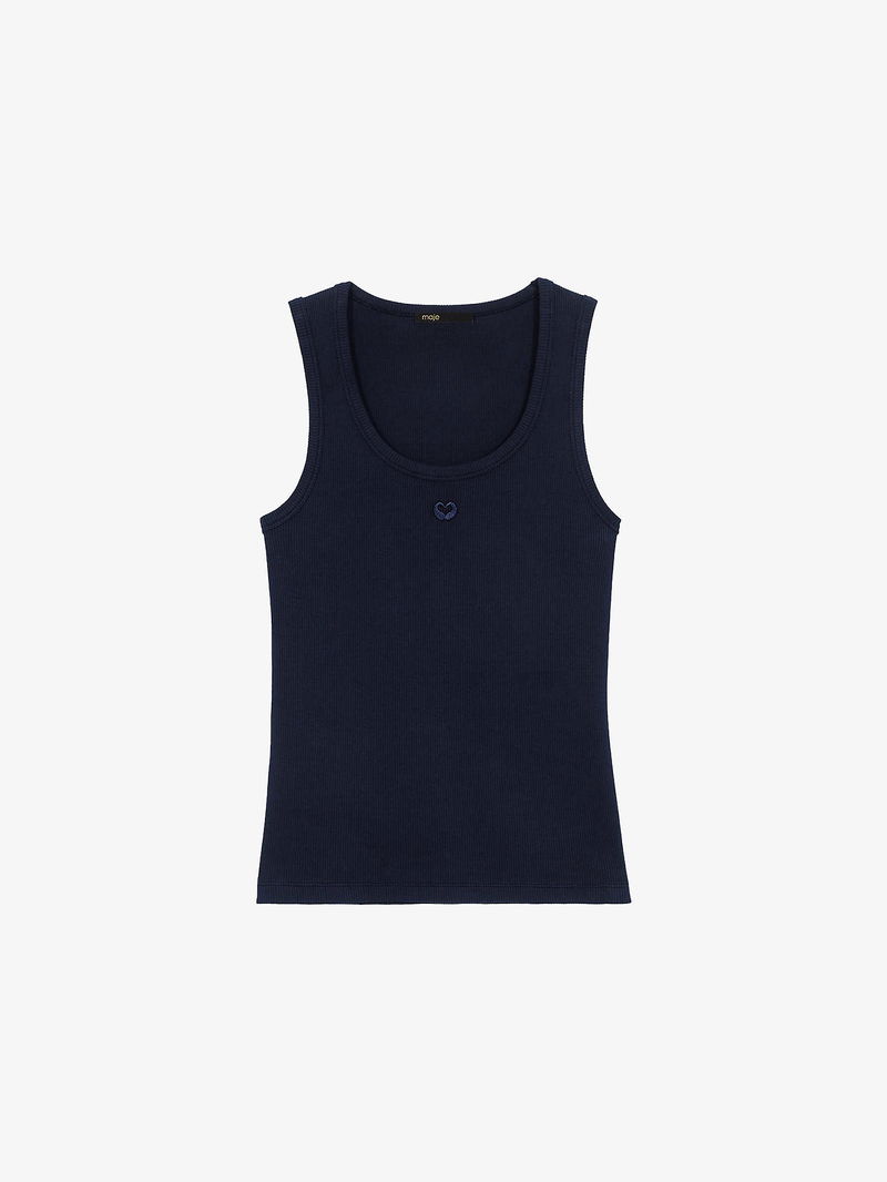 Logo-Embroidered Ribbed Stretch-Cotton Tank Top