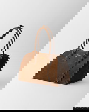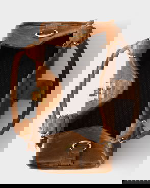 Maje suede and leather tote bag. Magnetic fastening. Top handle, long straps, drawstring top, removable heart charm, logo embossed at the front, one main compartment, silver-toned hardware.