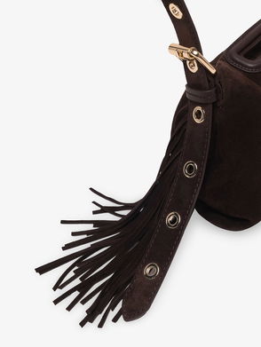 Maje's latest line is filled with updated versions of its classic accessories, with seventies’ influences making their way into the new sizes and shapes. The label reworks its signature M bag to a smaller silhouette in its latest collection. Cut from leather with a croc-embossed texture, its structured design has fringed edges, while the cutout handles are stamped with gold-toned lettering. (Height 17cm, width 15cm, depth 4cm)