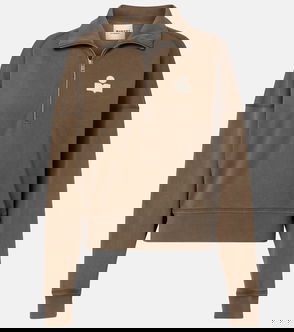Pearl-Embellished Patch Cropped Cotton-Blend Jersey Sweatshirt