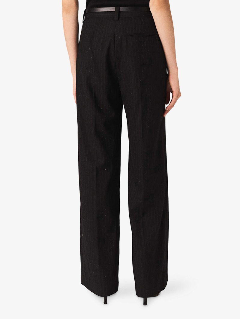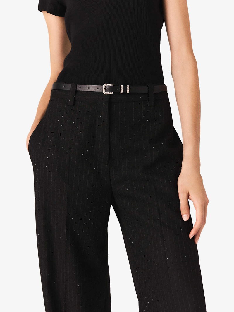 Pinstriped Rhinestone-Embellished Stretch-Woven Trousers
