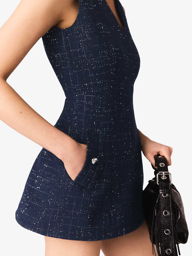 Sequin-Embellished Layered-Effect Tweed Playsuit