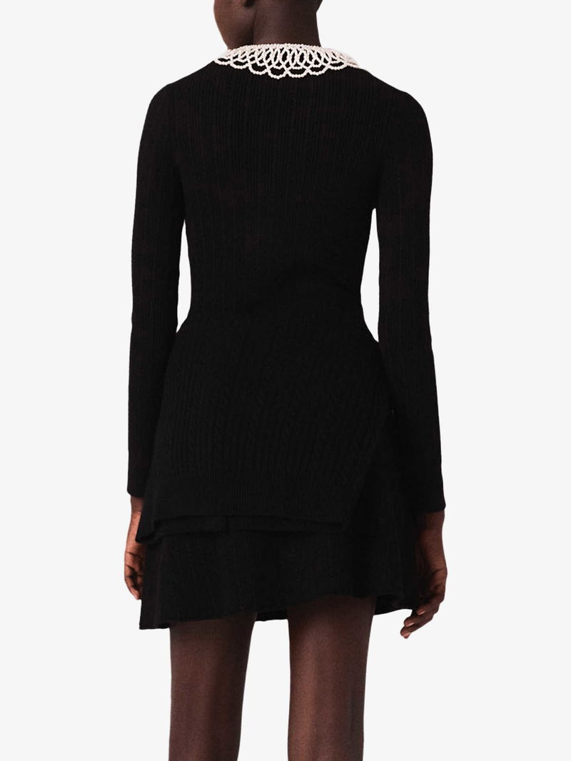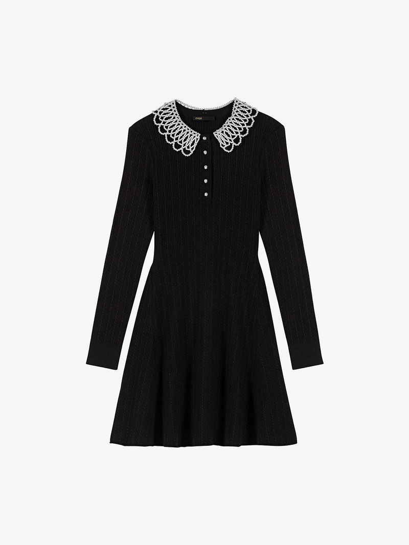 Short Beaded-Collar Stretch-Knit Mini Dress
