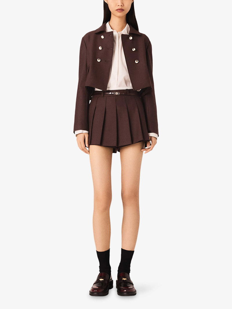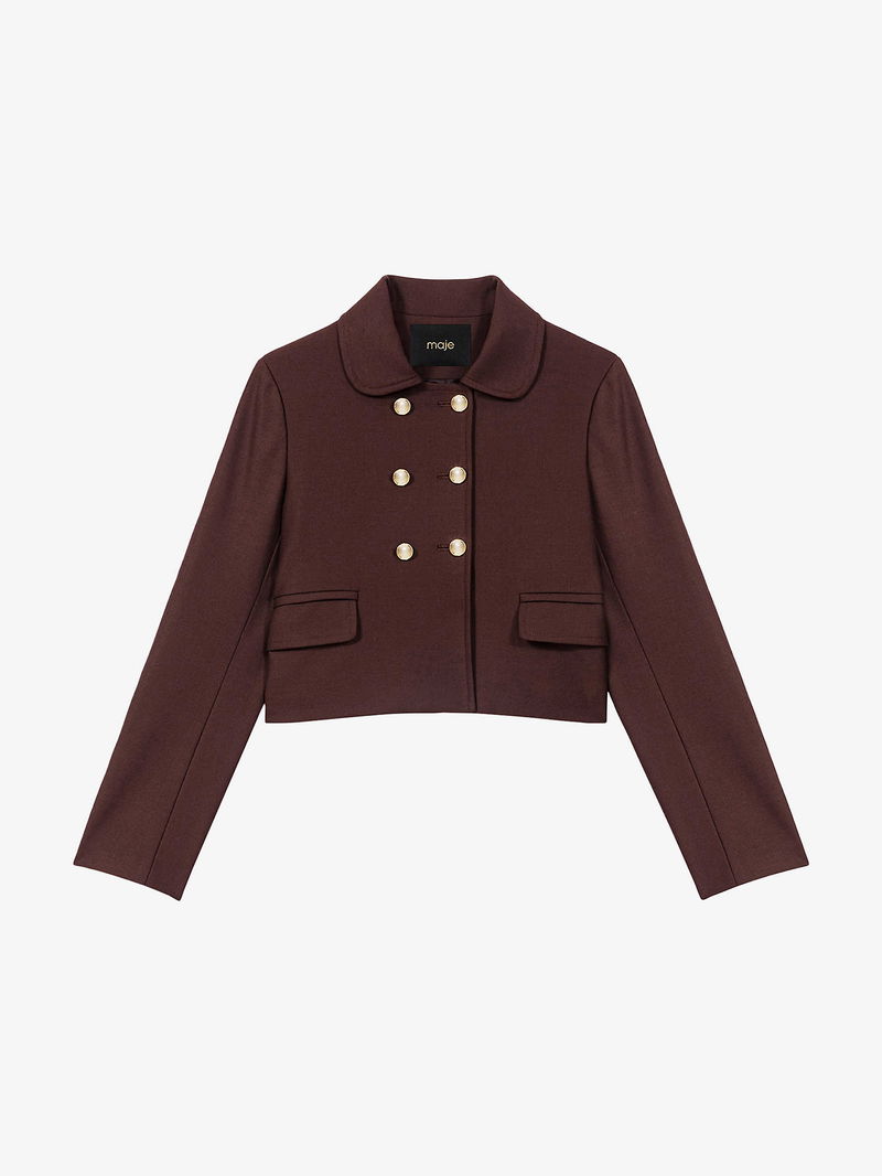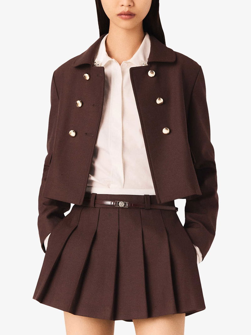Short Double-Breasted Stretch Wool-Blend Jacket
