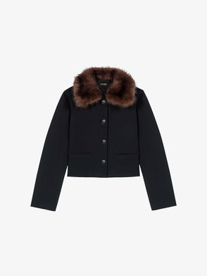 Regular fit, round neck, long sleeves, flap pockets at front, tweed texture, contrast trims