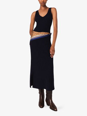 Maje knitted midi dress. Button fastening. Slim fit, collar, three-quarter-length sleeves, chest pockets, side pockets, ribbed texture. Lightweight, slight stretch.