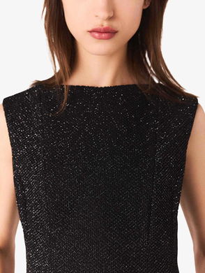 Concealed zip fastening at back. Slim fit, square neck, sleeveless, corset effect, flared skirt.