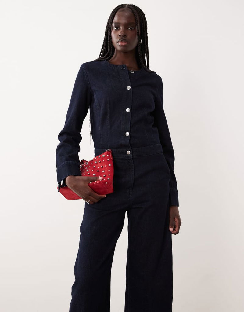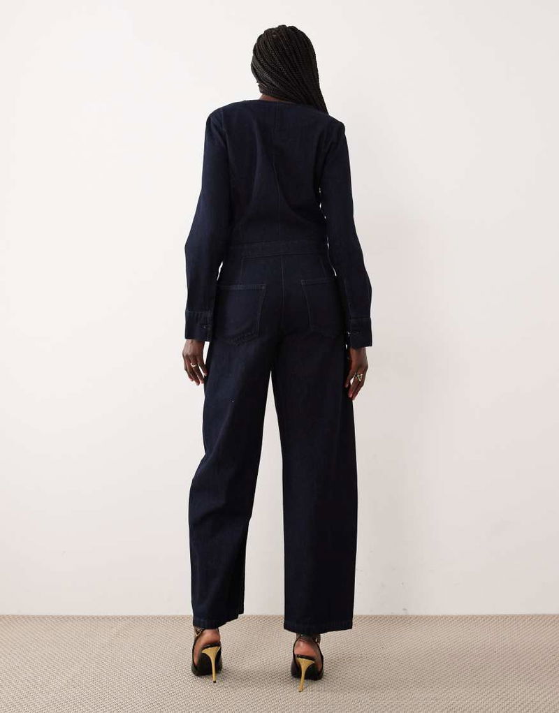 100% Cotton Long Sleeve Jumpsuit In Indigo
