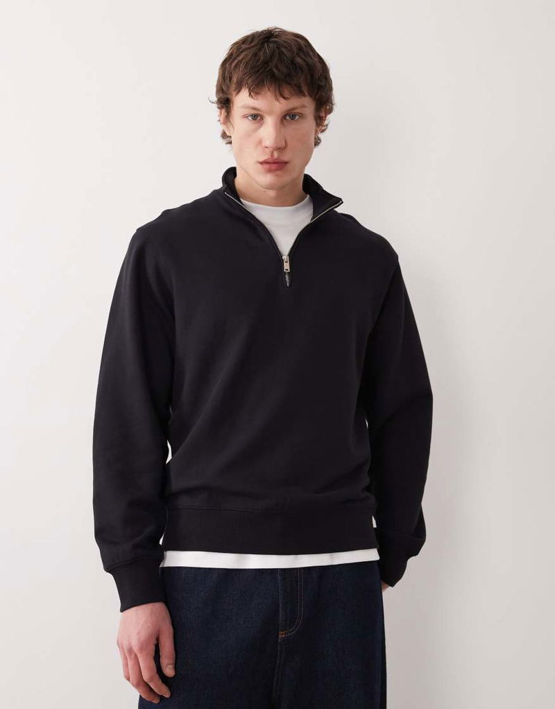 100% Cotton Quarter Zip Sweatshirt In Navy