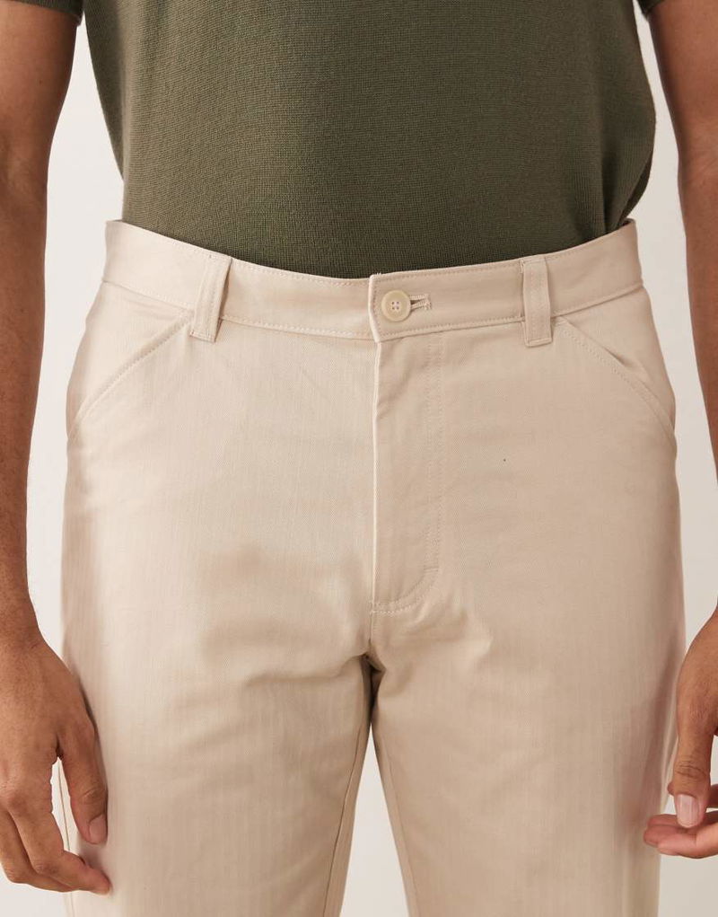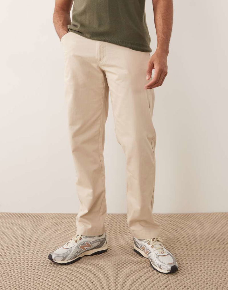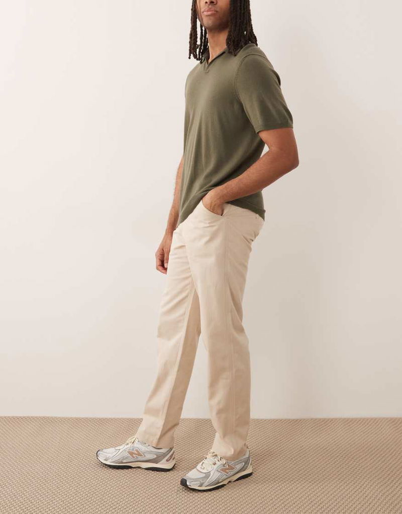 100% Cotton Straight Trouser In Cream