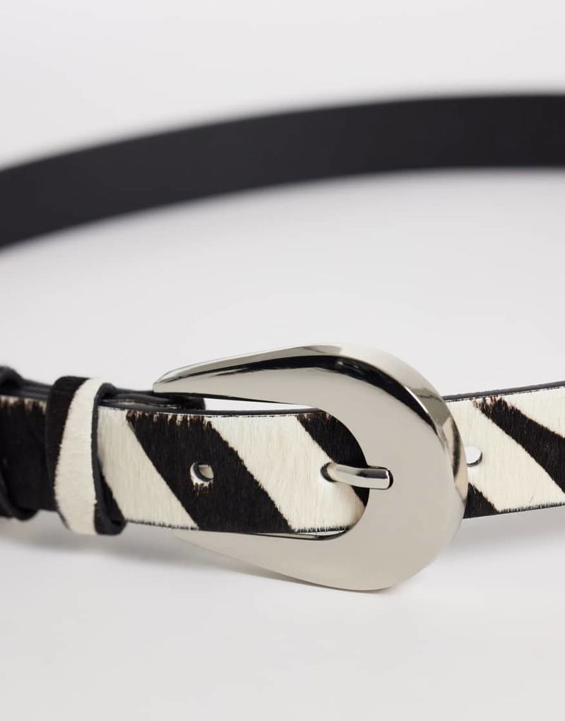 100% Leather Belt In Zebra Print
