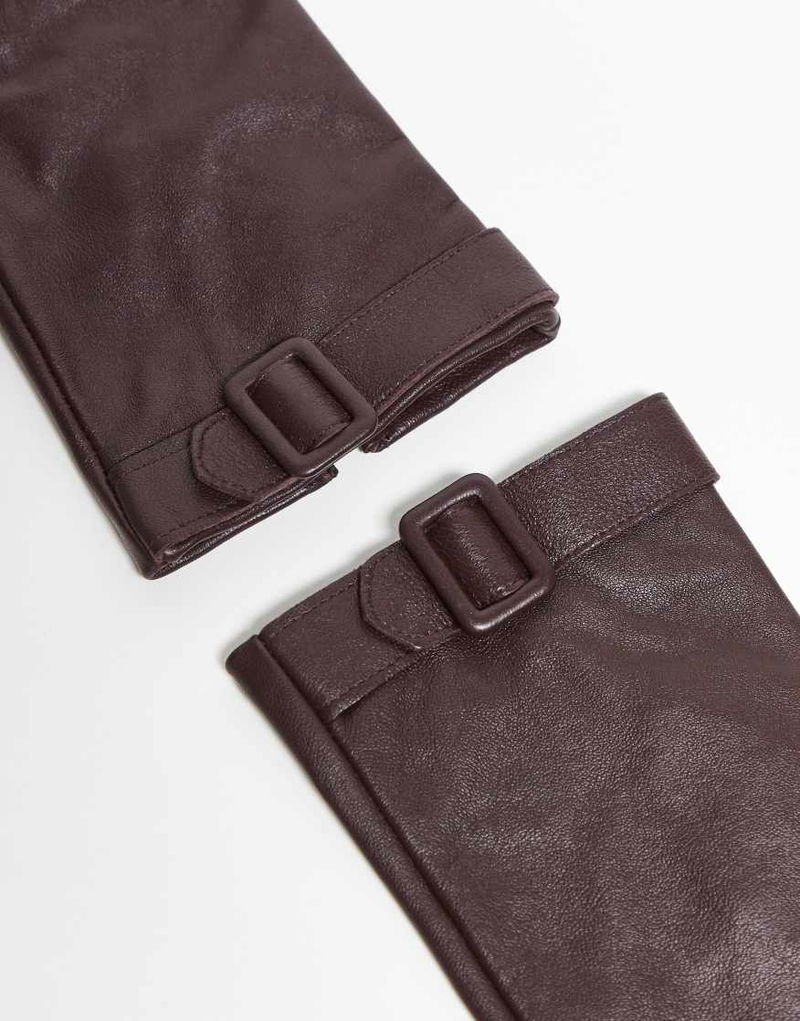 100% Leather Gloves With Buckle In Cherry Red